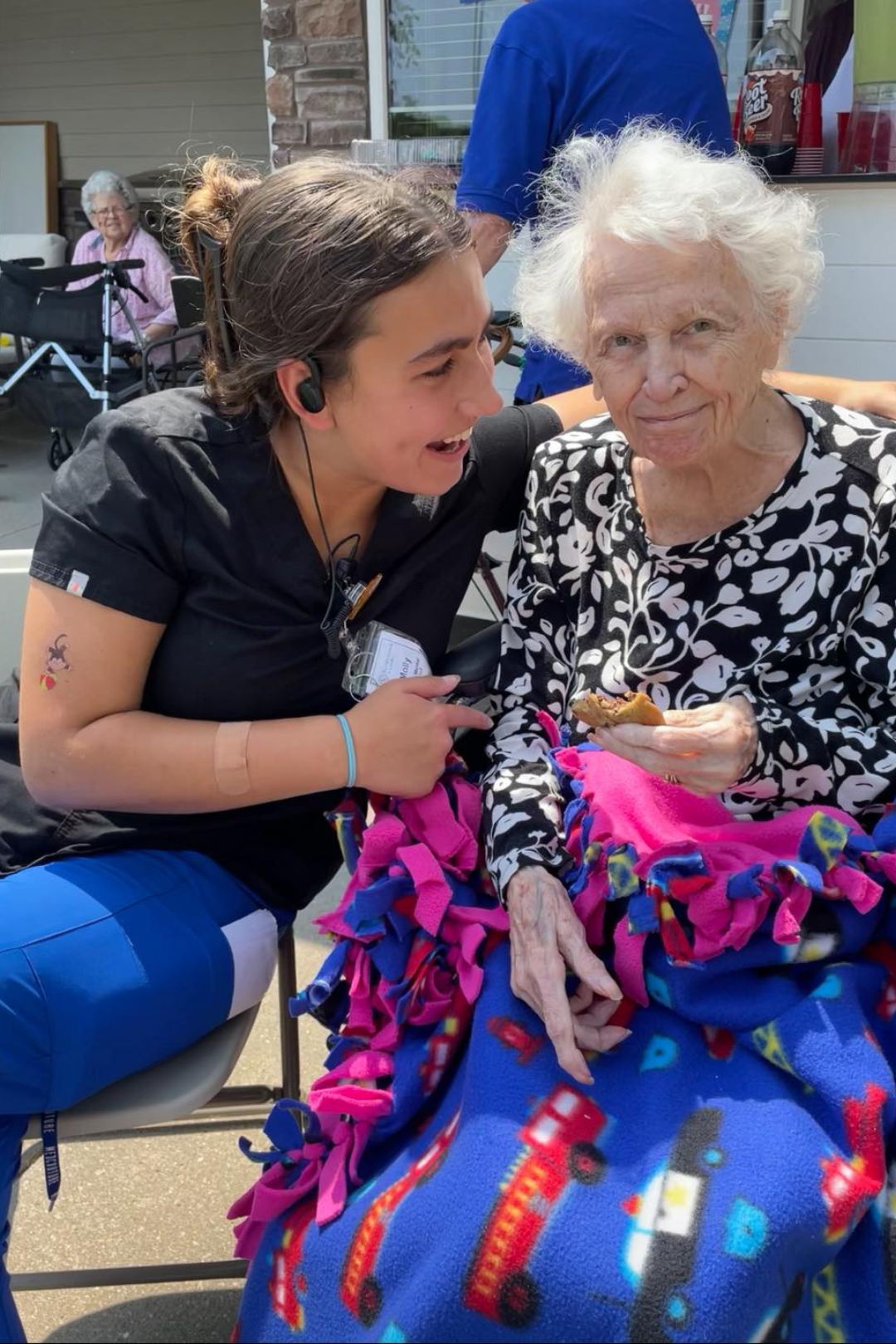 Discounted employee meals, discounted scrubs to purchase onsite, onsite free flu shots, employee referral bonuses (paid to both referring and referred employees multiple times in the first year!), and fun times to celebrate throughout the year!